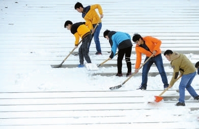 昨日,沈阳农业大学的学生在校园内除雪。当天是沈阳农业大学新学期开学第一天,近4000名学生在校园中除雪,用劳动迎接新学期。据新华社