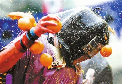 当地时间2月15日,意大利北部的一个小镇上,居民走上街头,互扔橙子。据悉,在多年前,这里的士兵用长毛和盾牌推翻了当地一个邪恶的国王,如今,人民用投掷橙子纪念那一历史时刻。