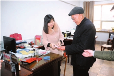 “支援新农村建设人人有责,党员更应带头,这是我一点心意。”3月5日上午,85岁高龄的老党员周永清,向咸安区委组织部递交了600元特殊党费。图为工作人员为其开具特殊党费证明。 通讯员 葛薇 常忆南 陈文林摄