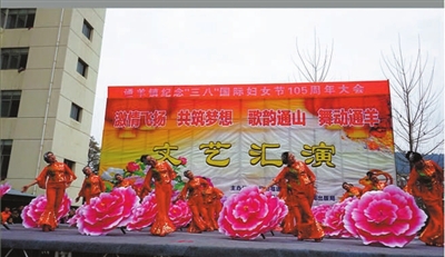 3月6日,通山县通羊镇政府大院人头攒动,来自全镇各村(居)的群众齐聚一堂,共庆三八妇女节。16个节目均由各村民间文艺爱好者自编自演,节目形式有大鼓、舞蹈、快板、独唱等,节目演出了新常态下新农村的新面貌、新变化,让上百名群众流连忘返,如痴如醉。 记者徐世聪通讯员 何猜摄