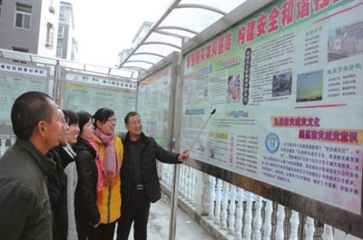 3月5日,通羊镇南门桥社区支部书记阮顺正在辅导居民学习减灾知识。该社区为了保障居民生命财产安全,不定期组织居民学习防灾减灾知识,去年被省减灾委评为防灾减灾先进示范社区。通讯员张远杰谭志鹏陈玉英摄