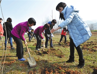 12日,市妇联干部职工来到崇阳县路口镇白羊村开展义务植树活动,栽种黄桃苗100余株,同时,还给村民们送去了科技、法律、卫生等宣传手册和图书。 记者 夏正锋 通讯员 孟丽摄