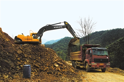 图为幕阜山生态旅游公路崇阳高枧段路基施工现场。