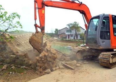 15日,嘉鱼县陆溪镇虎山村,工人们正在拆除乱建的房屋,准备新建一个农民活动广场。广场占地约80平方米,可惠及周边100多户农家。今年以来,该镇联合多个部门开展卫生整治,全力建设秀美村湾。