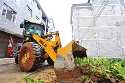 9日,通城县石南镇石南社区,工作人员正在清理小区公共绿地上的“菜园”。今年以来,石南镇大力开展清洁家园活动,清理闲置地、闲置屋和狭窄巷子里面的杂物、垃圾,全力打造干净石南。
