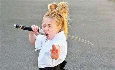该女孩名叫杰西·简·迈克帕兰德,来自北爱尔兰阿玛郡。从三岁开始学习武术的她精通柔道、中国功夫、搏击等多种武术,去年开始学习剑术,小小年纪已经囊括包括世界武术协会少年组搏击冠军在内的117项武术界奖项,未来目标是冲击奥林匹克相关项目奖项。
