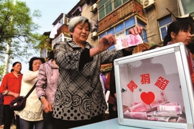昨日,安徽省铜陵市滨江社区居民在为患重病中学生捐款。铜陵市第七中学学生吴嘉希、铜陵县第三中学学生高荣轩被查出患有白血病,当地爱心组织正在积极为两名学生开展募捐。 据新华社