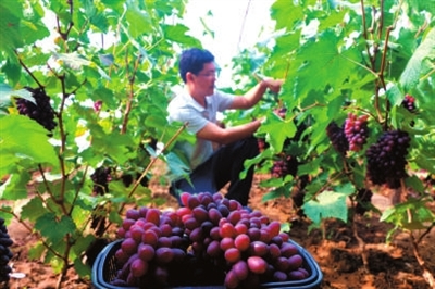 昨日,河北省承德市平泉县卧龙镇八家社区农民陈楠在采摘茉莉香葡萄。2014年,平泉县开始试种茉莉香葡萄,所产的茉莉香葡萄具有浓厚的茉莉香味等特点。 据新华社