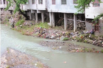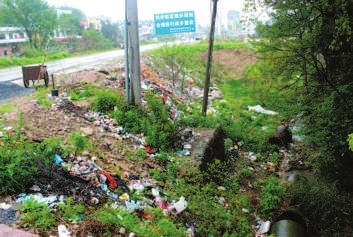 通城县隽水镇石泉村:该村320省道出入县城道路右侧河沟垃圾遍地,还有不少村民正往路边倾倒垃圾。
