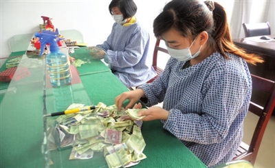“辛苦是有点辛苦,但是3年下来,已经习惯适应了,最主要是我的脸部皮肤过敏,加之长期与钱打交道,导致皮肤红肿。”点钞员陈直民边清点着钱币,边和记者聊天,熟练地把一张残币和3枚游戏币清理出来。