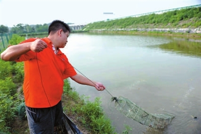19日,通城县五里镇五里村龙虾养殖基地内,负责人魏水龙正收起地笼。“基地就在武深高速旁,我们出产的龙虾也更易被人知晓。”魏水龙说,基地还打算将品牌广告做到高速上去。 记者程慧 通讯员 时朋朋 摄