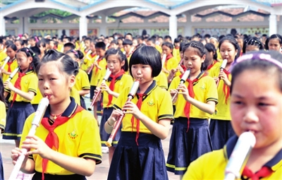 1日上午,市实验小学操场,学生正在进行巴乌才艺展示。当天,该校第十五届美育节活动启动,集体才艺展示、转呼啦圈、滚铁环等多项活动轮番上演,广大家长也走进学校,与孩子们一起欢度节日。 记者 夏正锋 通讯员 付步雄 摄