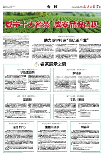 咸安区农业局副局长、区茶叶办负责人吴永新告诉记者,咸安茶叶历来以质优而出名。全区多家企业生产的名优茶多次荣获国内外水平最高的“中茶杯”和“国饮杯”金奖或特等奖。茶叶加工水平在全省处于领先水平,近年来,区内名优茶加工全部实行了机械化。