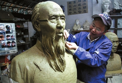 桂宏伟带上几件作品照片赶到临湘,毛遂自荐,那位先生被桂宏伟的作品深深吸引,当即决定将100名人的雕像交由他制作。