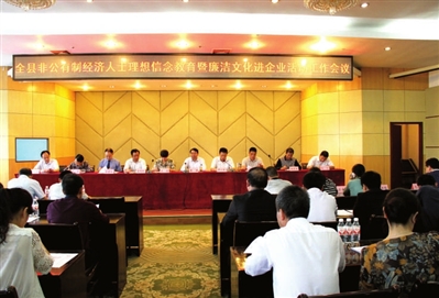 廉洁文化进入企业5月19日,通城县70余位企业负责人齐聚一堂,参加以“诚信守法、廉洁兴企”主题动员会,拉开了该县廉洁文化进企业活动的序幕。