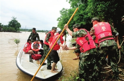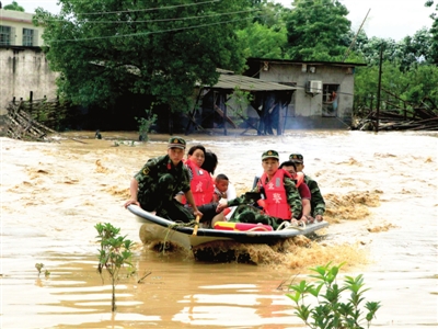 6点50分,县人武部、消防中队、武警中队官兵100多人、民兵应急分队220多人、12辆军车,9艘冲锋舟,深入石城镇黄龙村、八一村、桂口村、长坪村等重灾区抢救、转移被困群众1000余人。