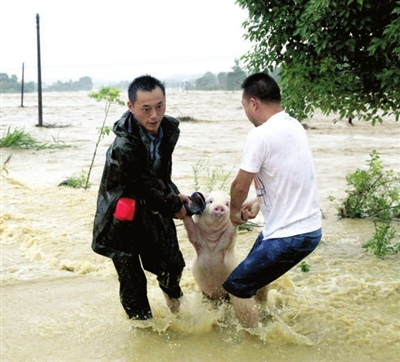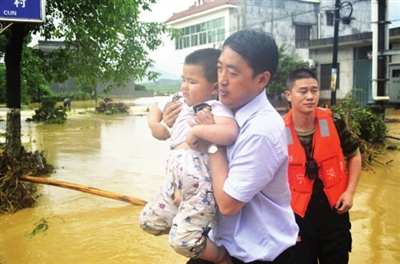 “大家注意安全,我抱小孩,你抱产妇!快,快,快!”正在白骡村7组指导抗洪救灾的县委副书记、常务副县长廖建鸣随消防官兵坐上冲锋舟进入村庄时,一把抱起产妇手里的婴儿。