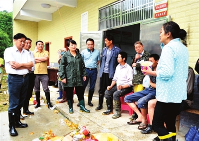 县委书记杨良锋第一时间赶赴受灾严重的桂花泉镇双港村,并要求应急队伍要想尽一切办法挺近双港村,摸清村民受灾情况,安排群众转移。