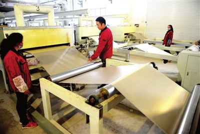 (上图)1日,湖北通城中天云母制品有限公司员工正加紧生产。去年,公司投资3000万元建成15条生产线,预计年产值超过1.3亿元。