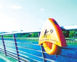 险情发生时,这个救生圈一旦被取下基座,就会发出警报声,提醒周围的人有险情发生,快来施救。同时,在材料上这个救生圈采用了新型泡沫,不仅能抗紫外线、海水等的长时间侵蚀,在水面上漂浮时间也更持久,更耐用。亮黄色的颜色十分醒目,既便于发现也能警示靠近的鲨鱼。(本报综合)