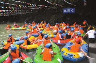 6月9日,享有“华中丛林第一漂”美誉的通山县太阳溪漂流激情开漂,正式拉开今夏“通山避暑漂流季”的序幕。当天,200余名游客前来体验清凉与刺激。