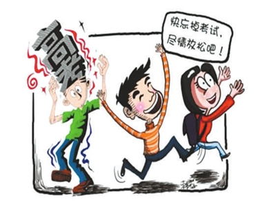 考生和父母都应该从心理上尽可能地放松,将绷紧的“弦”重新调整,以应对即将来临的各种问题(填报志愿、落榜、入学等)。如果考生在考后很难恢复生活节律,注意力不能集中,也可找心理医生咨询,及时调整自己的心态。