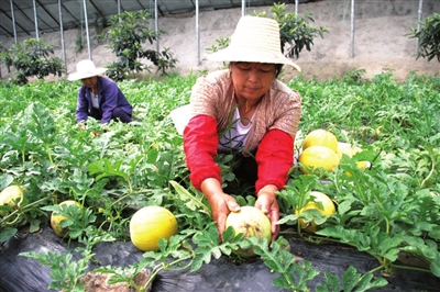 据了解,这两种西瓜均为无渣少籽绿色有机礼品瓜。目前,该基地试种“金童”、“玉女”精品西瓜共计20亩,年产量10万斤,年收入可达15万元。 通讯员 王莹摄