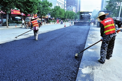 “我们先要把这些不规则的坑槽进行处理,然后铺洒乳化沥青,使其破乳后,再摊铺沥青混凝土,最后用压路机进行碾压,将填补料压实、压平,直至达到标准。”现场一名养护工人告诉记者,如果天气状况好的话,可较快完成片区破损的路面修补工作。