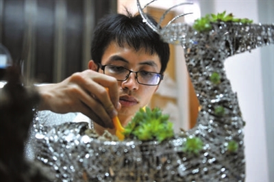 半年来,他收集了200多个多肉品种,还开了一家多肉苔藓植物馆。闲暇时,他就设计各种微景观。25日,他说,多肉植物按价格和稀有程度分为“普货”与“贵货”两大类,前者比较常见,一盆十来块钱或者几十元。“贵货”品种稀少,价格基本上都要好几百,而且高不封顶。