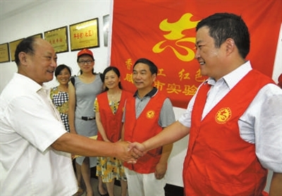 6月30日,咸宁日报社、市实验小学、市经信委、温泉中学、市农发行志愿者前往温泉办事处希望桥社区,慰问该社区10名老党员,并送上慰问金。 记者 陈红菊摄
