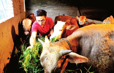 据了解,今年25岁的刘普生从武汉一所高校毕业后找到了一份清闲的工作,但迫于家庭负担,他没干满一年便辞职回乡。去年3月,他从亲戚那里筹措了10多万元,从黄陂、麻城等地购进30头西门塔尔、夏洛莱等品种肉牛,开始自学养殖。目前,首批肉牛已卖出,获利8万多元。“今年养了50头,效益还不错,我还想再扩大规模,带动周边的乡亲一起养牛致富。”刘普生信心满满地说。
