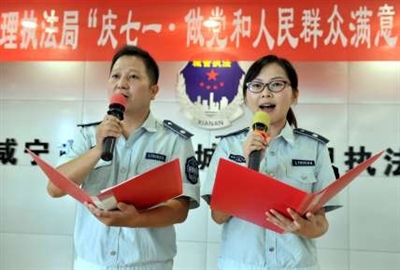 1日,咸安城乡管理执法局组织“庆七一·做党和人民满意城管”朗诵比赛,来自局机关、温泉、向阳湖、官埠桥等中队的选手结合本职工作,抒发了对城管事业的热爱。 记者 夏正锋 特约记者 胡剑芳摄