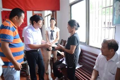 1日,市人民检察院、咸宁日报社和市人保财险公 司到通城县关刀镇走访慰问困难党员,送去1.8万元的 帮扶资金。 通讯员 何少伟 丁新龙摄