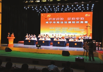 6月29日,市法学会、市依法治市领导小组办公室联合市委宣传部、市委政法委、市直机关工委、市司法局在市会议中心举办了“咸宁2015宪法知识竞赛”总决赛。通讯员黎江摄