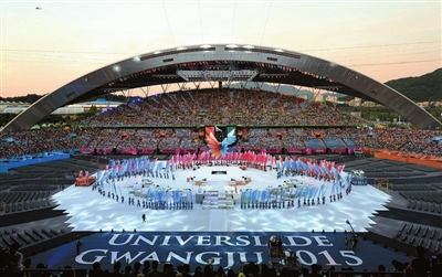 3日晚,第28届世界大学生夏季运动会在韩国光州拉开帷幕。中国大学生体育代表团总人数为596人,创中国参加境外举行的大运会代表团规模之最。 据新华社