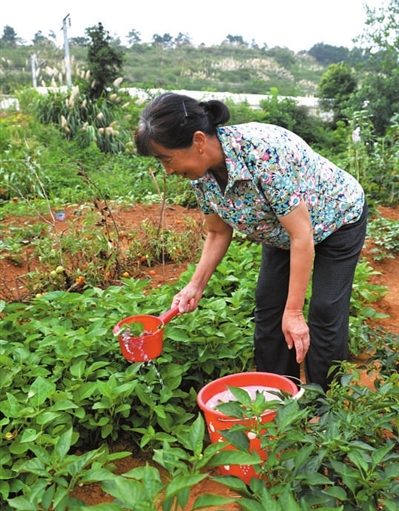 平时,谢厚玉除了照顾外孙女,买菜,很少出门,每天呆在家里看电视、打扫卫生。去年初,她终于找到了心灵寄托。她买来锄头等农用工具,在荒地里种菜。现在,一有空闲,她就扛着锄头去地里。因此她跟一些种菜的人熟悉起来。
