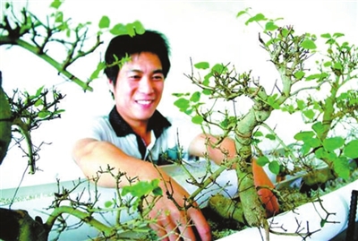 6月26日,谷城县冷集镇上集村3组返乡创业大学生宋善兵正在管理水培花卉。冷集镇为30多名大学生提供创业平台,为新农村建设注入活力。 (本报综合)