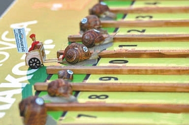 克罗地亚,当地时间6月27日,举办第四届蜗牛大赛,其中一项蜗牛赛跑,实在挑战观众耐心。