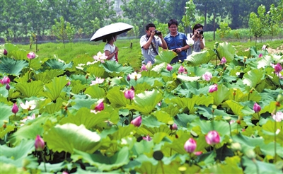 3日,嘉鱼县陆溪镇界石村,游客正在藕塘边观赏荷花。据了解,近两年,该镇加大招商引资力度,大力发展莲藕产业,莲藕种植规模达到5000余亩。每到节假日,前来该镇赏荷花、采莲蓬的游客络绎不绝。