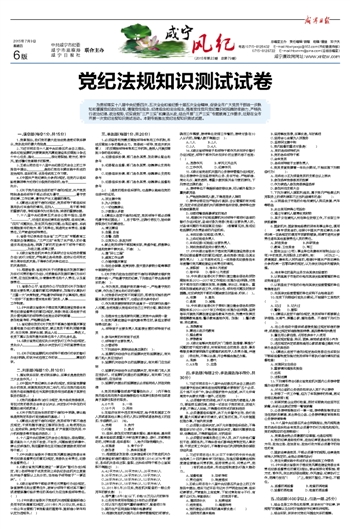 为贯彻落实十八届中央纪委四次、五次全会和省纪委十届五次全会精神,促使全市广大党员干部进一步熟知和掌握党纪政纪法规,增强党性观念、纪律观念和法治观念,提高党性党风党纪意识和拒腐防变能力,严格执行政治纪律、政治规矩,切实做到“三严三实”和廉洁从政,结合开展“三严三实”专题教育工作要求,近期在全市开展一次党纪法规知识测试活动。本期专版推出党纪法规知识测试试题。