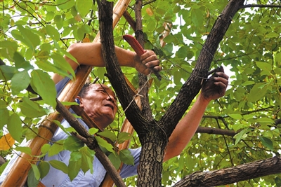 以往节庆时,为营造节日氛围,赤壁人民广场、部分道路边的树木上被挂上了霓虹灯,时间一久,悬挂在树木上的霓虹灯不再闪烁,灯线既不美观又影响树木生长。为此,该局组织工人对悬挂过霓虹灯的树木逐棵进行了清理,还树木一个自然生长的环境,使绿荫更加浓密。通讯员 飞扬 摄