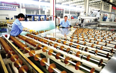 10日,咸宁南玻玻璃有限公司员工在加班生产。