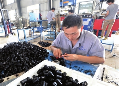 10日,嘉鱼县官桥工业园湖北迈悦科技有限公司,工人们正在操作台前忙碌。该公司主要生产橡塑模具和塑料制品,公司与东风、丰田、通用等多家知名企业建立了长期合作关系,市场前景看好。项目一期已于今年3月投产,明年二期项目投产后,可实现年产值1亿元,带动就业300人。
