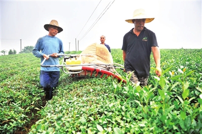 机械化采摘茶叶,有效解决了夏季鲜叶需求量大与劳动力短缺的矛盾,大大节约了采摘成本。据悉,采茶机日采鲜叶量可达5000公斤。