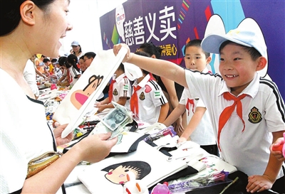 当日,上海外国语大学附属小学在上海某商场举行主题为“情系山区,播种爱心”的义卖活动,小学生们将自己亲手绘制和制作的物品进行义卖,筹集的善款将用于为江西山区小学的阅览室购买图书。据新华社