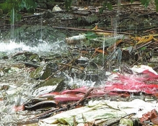 崇阳县港口乡塘口村:河道垃圾污染严重。