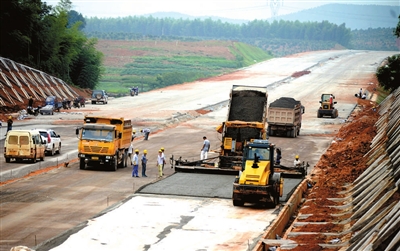 12日,嘉鱼长江大桥环线高速公路(即咸宁西段)正紧张施工。