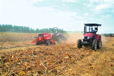 | 机械化收割玉米 |