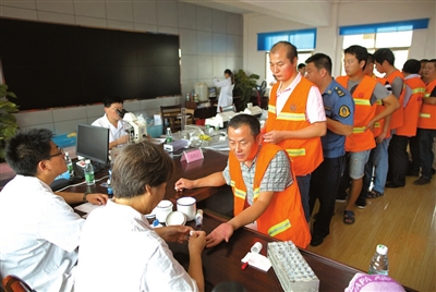 8月13日,湖北省公路管理局联合同济医学院为咸安区公路局500多名一线职工进行健康检查,以掌握公路养护工等工种的职业危害和职工健康状况。
