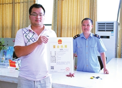 8月13日,咸安区第一张“三证合一”营业执照在区政务服务中心工商窗口发放,咸宁嘉懿投资咨询有限公司成为第一家享受三证合一便捷服务的企业。“三证合一”是指一张营业执照涵盖了工商注册号、税务登记证号和机构代码证号。办事群众和企业只需在服务中心三证联办窗口提交所需材料,就能同时办结工商、质监、税务三家单位的登记手续,最快当天便可拿到新版执照。 通讯员 吕焰伟 摄
